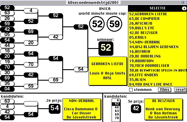 11. De selecteurs bepalen welke twee films worden uitgezonden naar de "World Minute Movie Cup" Wedstrijd 2001 in Tallinn (EST):